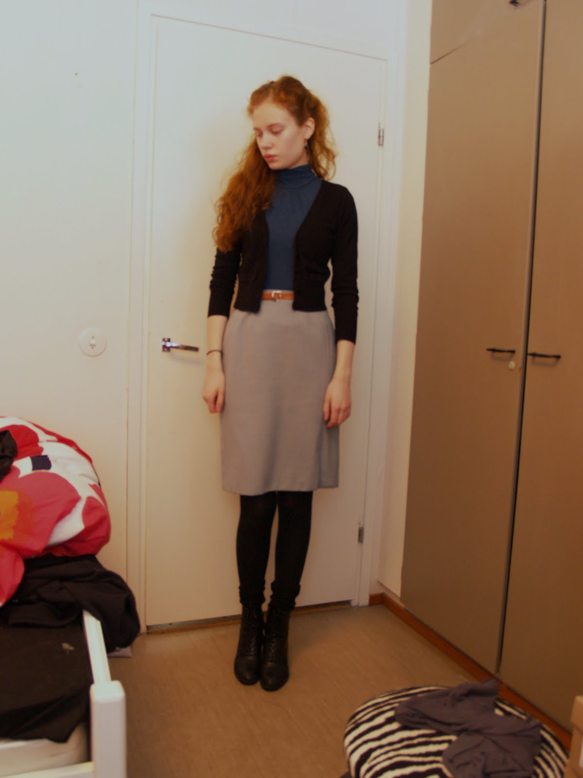 Tässä näkyi myös ne kahdet talvikengät joita vuoropäivin käytän. Ylemmissä kuvissa nilkkurini ja alemmissa talvisaappaani. Näiden lisäksi on vaan yhdet pulkanlasku ym. henkiset talvikengät. Jälkimmäinen hame on täysvillainen ja ostettu Nastasta. Jotenkin nyt tän vuoden aikana kaapista on alkanut löytymään kaikkiin vuodenaikoihin sopivia asuja, kun ennen odotin vaan syksyä ja kevättä ja kesällä ja talvella näytin hirveältä ja itkin. Liittyneekö vaatemäärän pienentymiseen sekin. Tukan kanssa oon nyt kanssa skarpannut ja alkanut laittaa sitä yhtäpaljon kuin Oriveden aikaan. Vielä kun saisin dokumentoitua näitä juttuja vähän useammin.